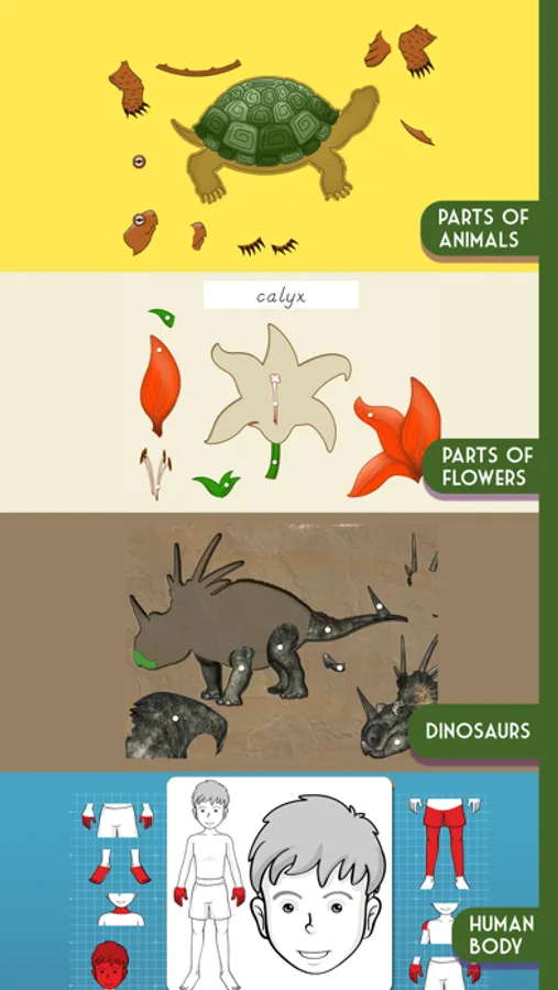Parts of Animals: Packed with beautiful features, colors and audio, this app will engage young children to explore what makes a fish a fish, what makes a bird a bird, etc.