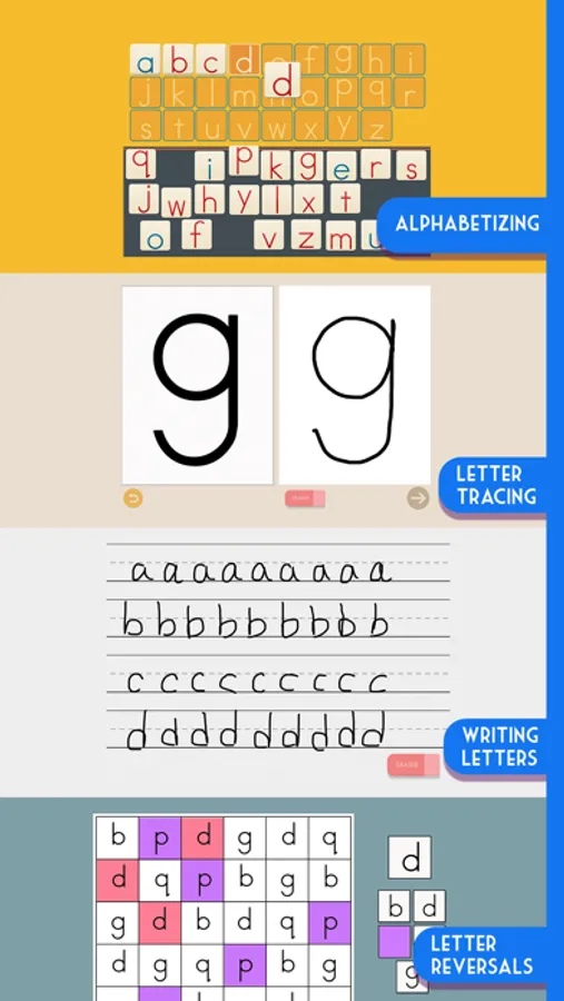 Letter Reversals: This activity will help children to clearly identify and remember the unique shape of the letters b, d, g, p, and q by using tracing and memory matching activities.