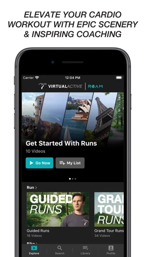 Transport your mind as you transform your body. Virtual Active Roam elevates your cardio workout with epic scenery and inspiring coaching. Visit stunning sights around the world, from the bustling streets of Paris to the rugged peaks of New Zealand's Souther Alps, all from your treadmill, bike, or elliptical. Enjoy smooth motion and cinema quality photography that will make you feel like you're there. Take a challenging guided tour with one of our coaches, or just zone out and enjoy the scenery.