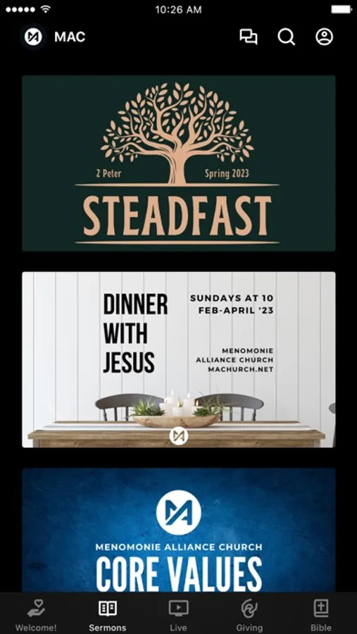 Menomonie Alliance Church app for updates, information, service time, giving, live stream, and past sermons.