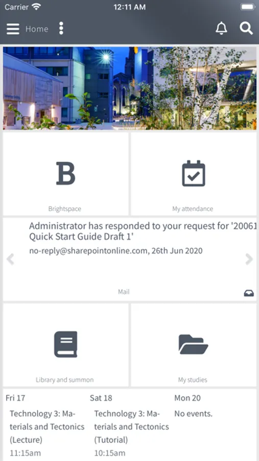 • My studies - access key guidance around your studies, including the Library, Academic Skills Tutors and IT support.