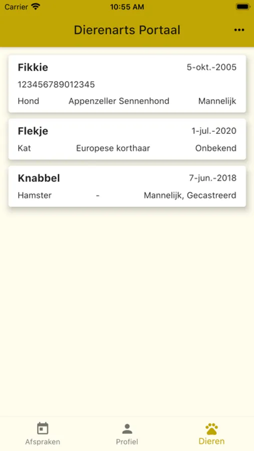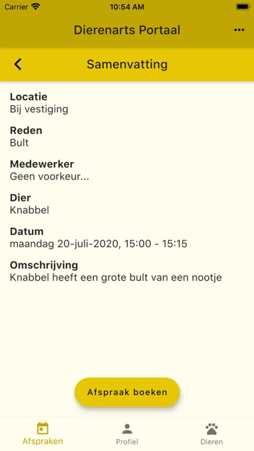 Wel zo handig, even tussendoor de afspraak voor de dierenarts inplannen zonder rekening te hoeven houden met de openingstijden van de kliniek. Rechtsreeks vanaf uw telefoon en meteen een duidelijk overzicht van welke afspraken er staan.