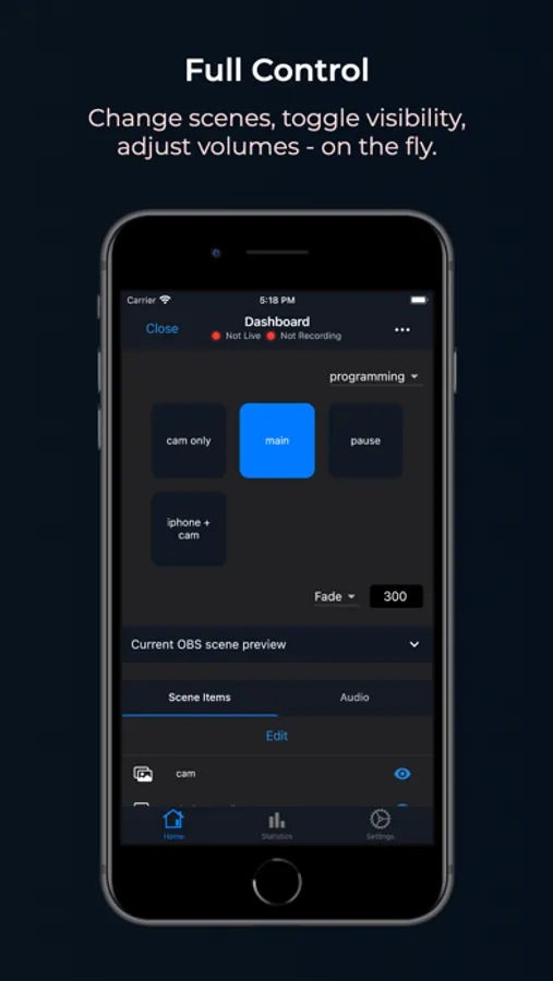 DISCLAIMER: This app is not in any way affiliated with OBS (Open Broadcaster Software). It's an unofficial, free and open source app to control OBS (https://github.com/Kounex/obs_blade)