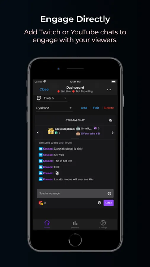 - See live statistics of your stream performance (FPS, CPU usage, kbit/s etc.)