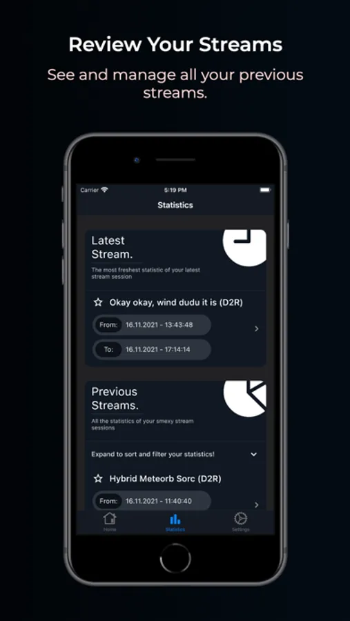OBS Blade also saves statistics of your previous streams so you can track the overall performance and some nice to know facts!