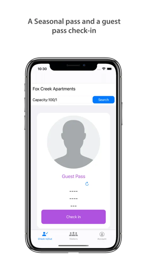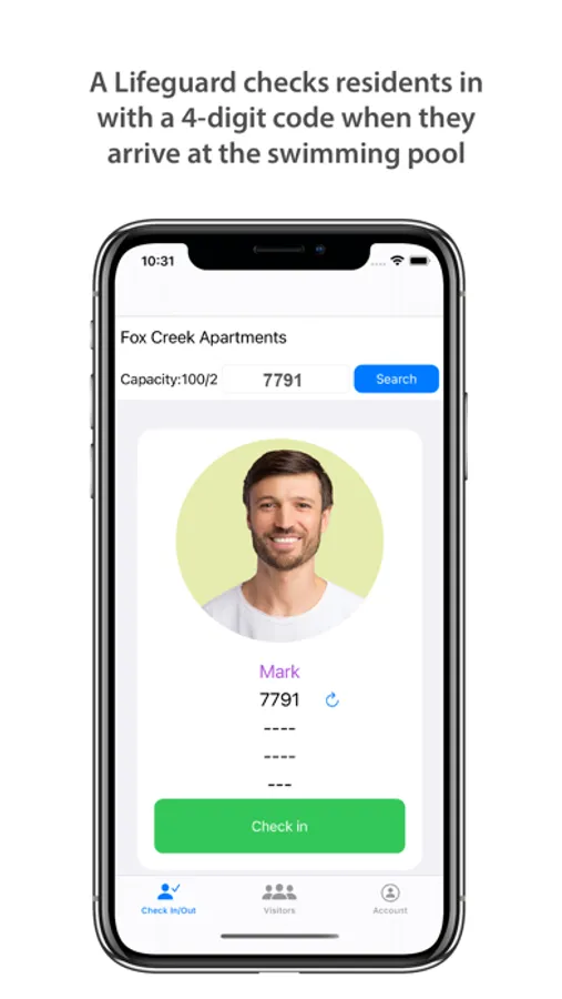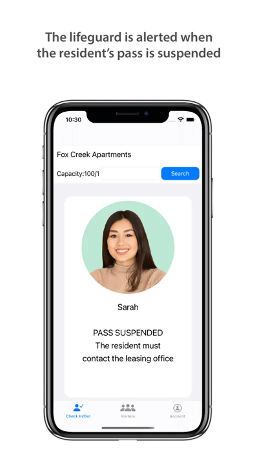 A swimming pool pass system for apartment complexes and homeowner associations. A mobile app for a lifeguard that allows the lifeguard to check in the residents in when they arrive at the pool. Seasonal swimming pool passes and guest passes. The community pool rules accessible to the lifeguard via the app.