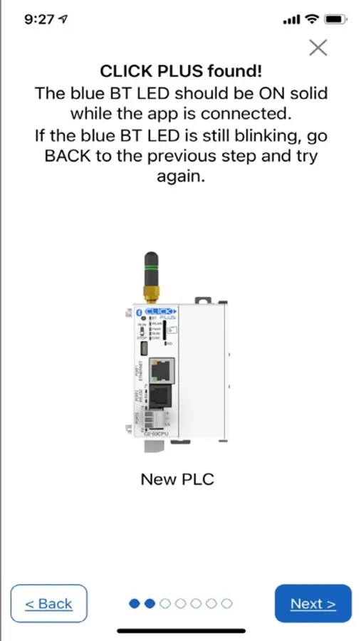 The CLICK PLUS Provisioning App is used to configure the AutomationDirect CLICK PLUS C2-02CPU and C2-03CPU controllers with Built-in Wi-Fi and Bluetooth. A Factory new CLICK PLUS has Bluetooth enabled by default which is used to allow the App to connect and quickly configure the needed Wi-Fi settings. Provisioning is usually done once and involves the process of preparing and equipping the CLICK PLUS PLC network settings to allow a wireless connection from the Click Programming Software until a project with permanent settings can be loaded.