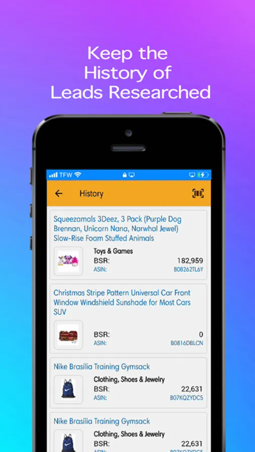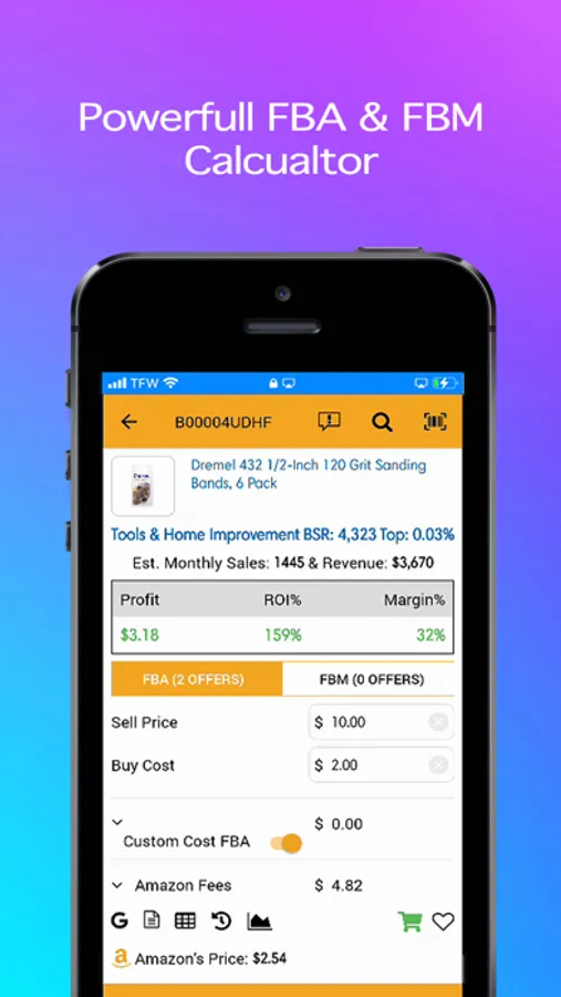 An online & retail arbitrage product research mobile app that features a built-in UPC scanner using your mobile app camera. It includes features: