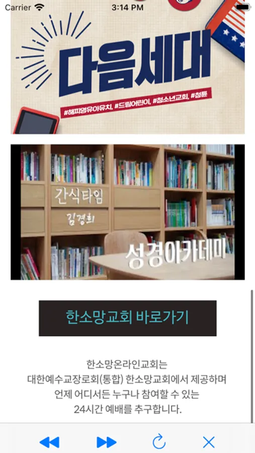 한소망미디어연구소는 대한예수교장로회(통합) 한소망교회에서 제공하며 언제 어디서든 누구나 참여할 수 있는 24시간 예배를 추구합니다.