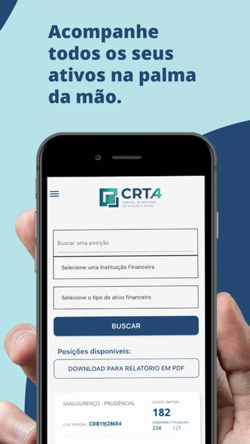 Somos uma entidade registradora de ativos financeiros, criada e controlada por algumas das mais importantes instituições financeiras do país. O aplicativo da da CERTA oferece um conjunto de ferramentas para que você possa consultar suas posições negociadas na bolsa de valores de onde estiver na palma da mão.