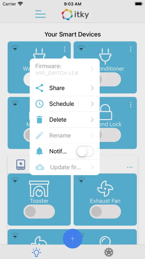 Itky app allows you to control Itky IOT devices from app directly. No remote required!