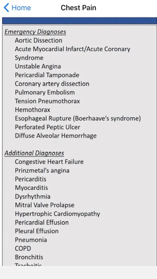 From common chief complaints such as chest pain and abdominal pain to palpitations and epistaxis, EMDDx enables you to keep a strong differential diagnosis in the palm of your hand.