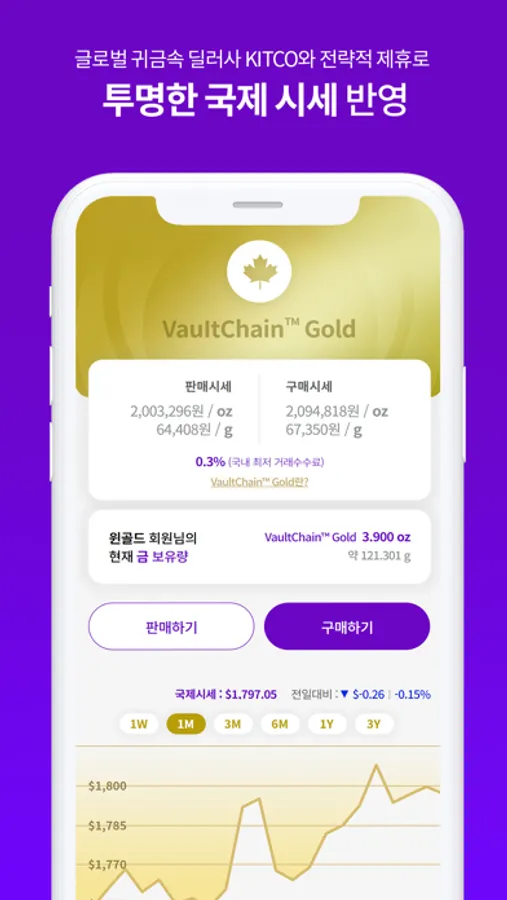 - 시세 걱정은 하지 마세요! Kitco로부터 제공받는 국제시세(LBMA Gold Price)를 통해 금 시세를 투명하게 책정합니다.