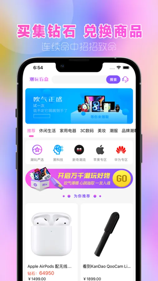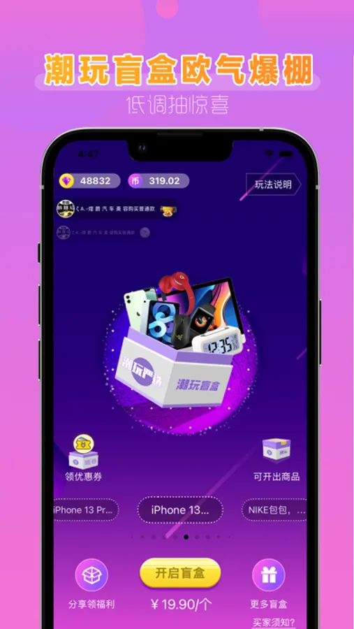 潮玩盲盒可供用户线上抽盲盒,随时随地抽盲盒。潮玩盲盒APP内涵盖海量超人气热门手机数码、手办、限定玩具;稀有隐藏款盲盒在线惊喜拆箱。