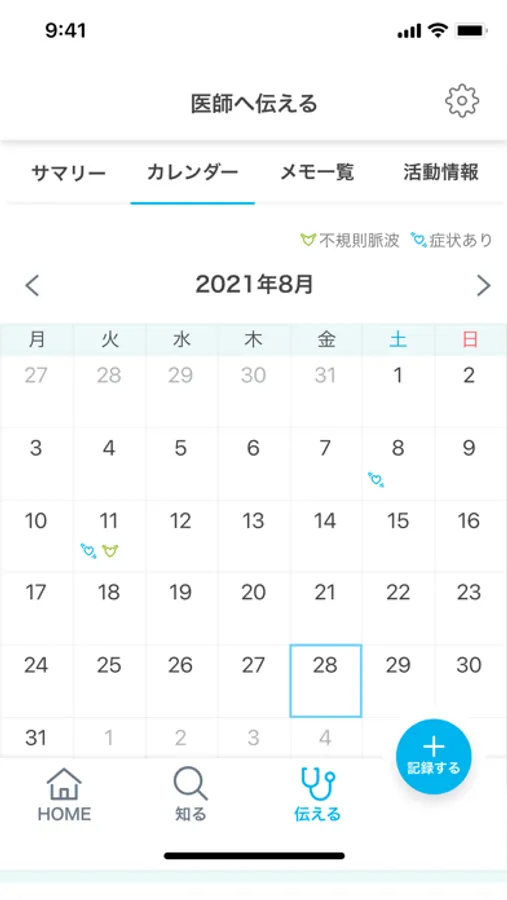 動悸/息切れ、などの症状を感じた時、メモ気分で簡単に記録することができます。