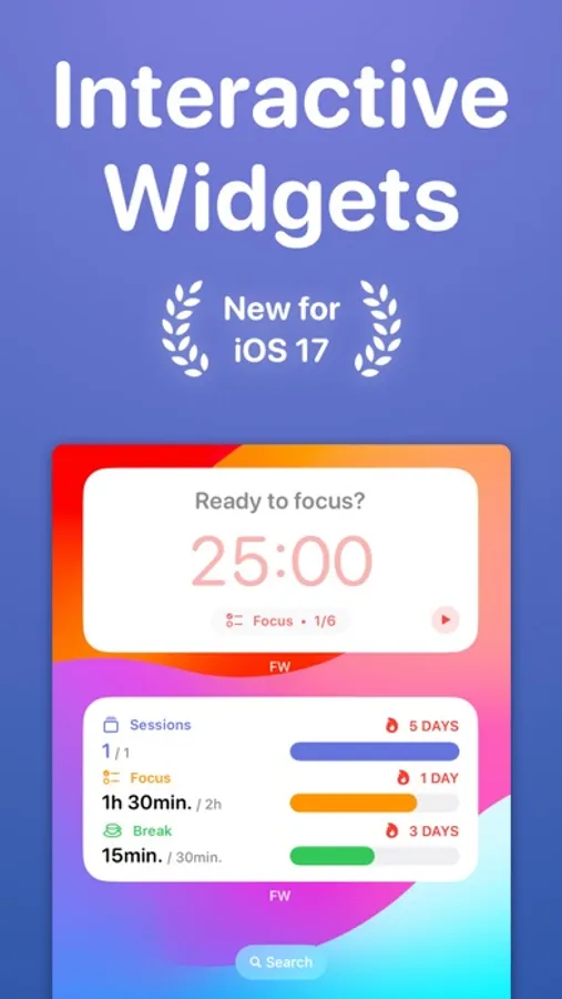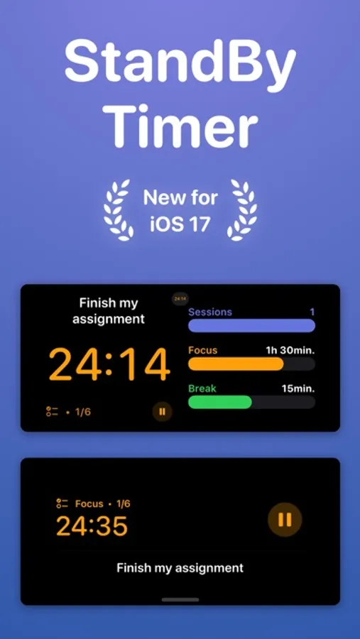 View your active focus session from the Home Screen and Lock Screen, with interactive buttons to pause and resume the session