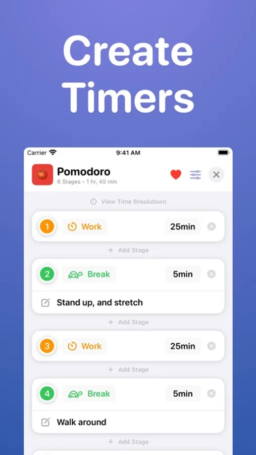 Add structure with Work, Break, and Planning stages, so you can always work at your best