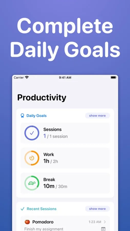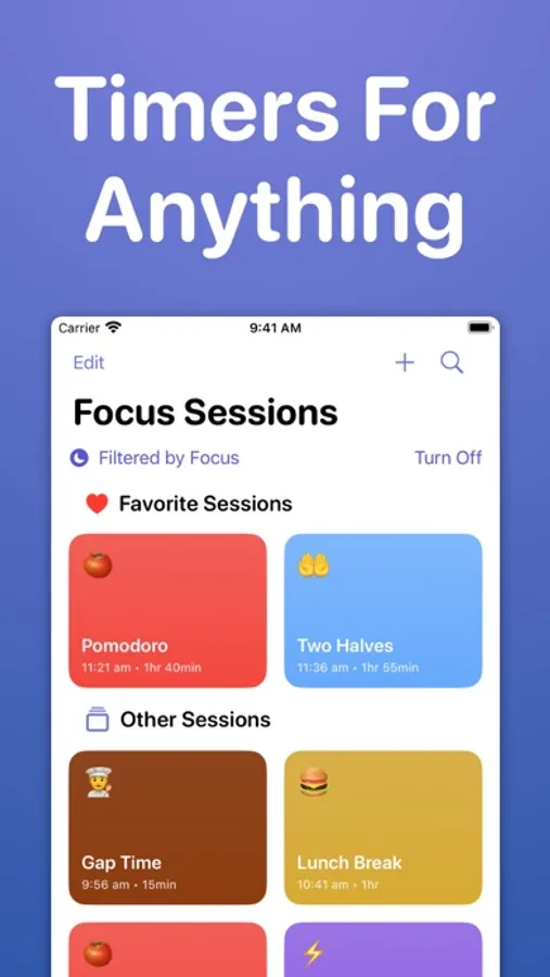 Tailor sessions for study, mindfulness, and work tasks, or timed configurations like Pomodoro, and organize them into groups