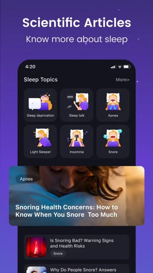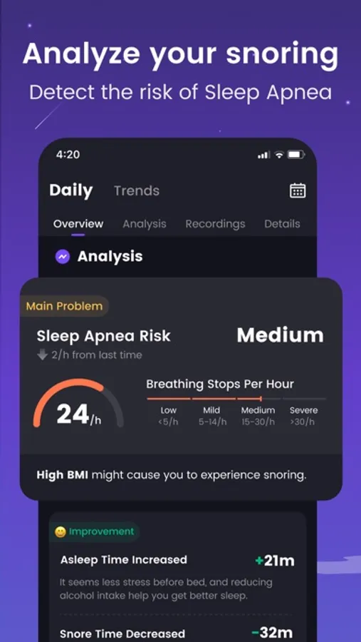 Subscribe to take advantage of all premium features such as snore detection, sleep talk recorder, detailed sleep analysis, and more.