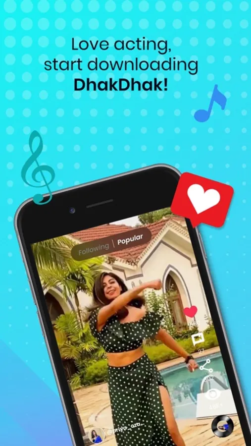 Install DhakDhak App - A Short Video Community to shoot videos, watch trending videos, edit videos, create funny dubbed and lip sync videos and share!