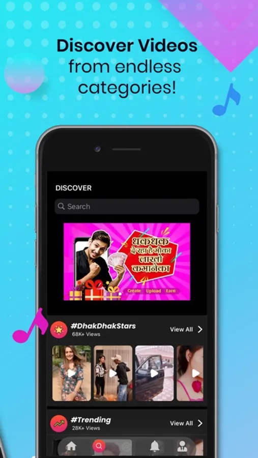 Discover videos from endless categories.- Check out DhakDhak app! Here you can find tones of short videos. Doesn’t matter what your interest is! We have short videos starting from dance, acting, singing, laughter, romantic and many more.