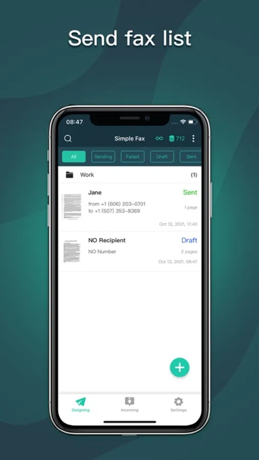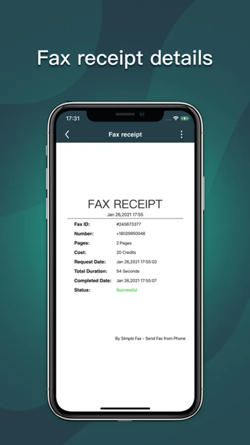 Simple Fax turns your phone into a fax machine for documents, photos, receipts and other texts. With Simple Fax, you can fax them anywhere.You can also receive faxes from all over the world.