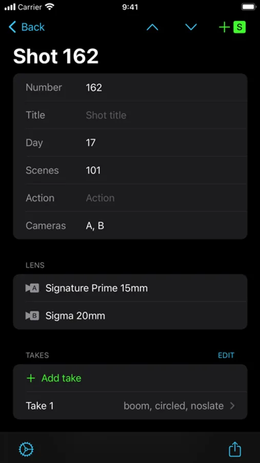 * Integrated stopwatch to time takes, mark where the action starts, and connect clips to metadata