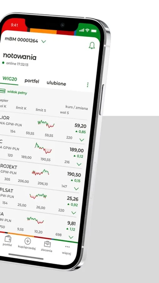 Dzięki nowej aplikacji mBank Giełda możesz w prosty sposób zarządzać swoimi inwestycjami giełdowymi z dowolnego miejsca w Polsce i na świecie. Aplikacja przeznaczona jest zarówno dla klientów eMaklera, jak i Biura maklerskiego mBanku. Jeśli korzystasz z eMaklera, potrzebne będą Ci dwie aplikacje – standardowa mBanku (mBank PL) i mBank Giełda.