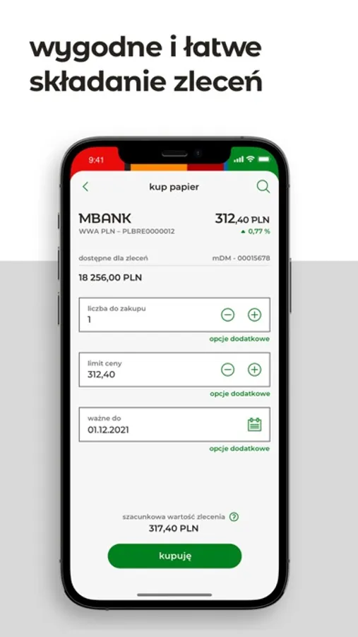• możliwość składania zleceń na rynki zagraniczne w walucie notowania instrumentu ( dostępne dla klientów Biura maklerskiego mBanku)