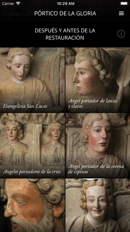 Second Canvas app is an innovative tool that allows you to explore the Portico of Glory in super-high resolution as never seen before. Discover, learn and enjoy the stories told by experts through the storylines, details about the restoration, and 3D reconstructions of the musical instruments in the work.