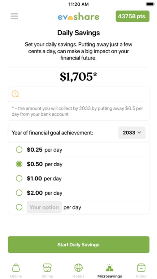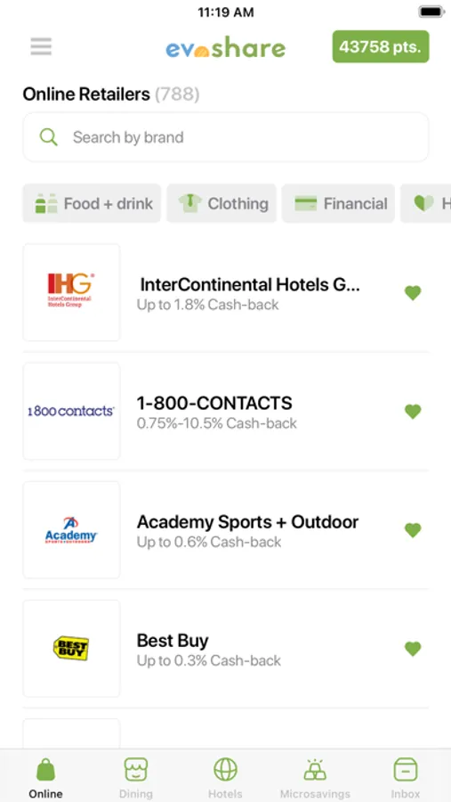 When EvoShare users install the app, they get easy access to more than 10,000 online sites and local shops and restaurants with cash-back deals. Users shop as usual and automatically get cash-back toward their chosen financial goal.