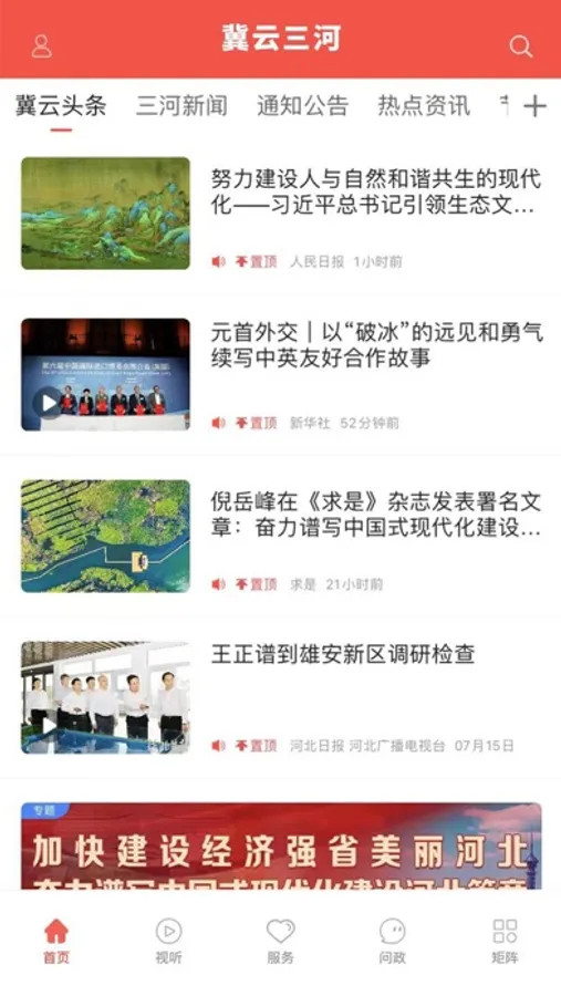 冀云三河客户端是三河融媒体中心倾力打造的三河第一新闻客户端,是以“新闻+党建+政务+服务”为核心、以“融汇精彩,传播美好”为己任的综合性新闻客户端,既权威、理性、丰富,又生动、活跃、周到,更快捷、更立体、更全面地讲述三河好故事,传递三河好声音,树立三河好形象。