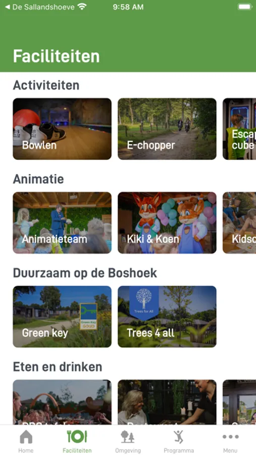 Recreatiepark De Boshoek op de Veluwe is een vakantiepark voor jong en oud. Onze faciliteiten zijn zeer kindvriendelijk en we hebben legio mogelijkheden voor vertier! Denk aan een sportpark met interactieve voetbalmuur of diverse speeltuinen van groot naar klein. Ook is er in de kindervakanties een animatieteam aanwezig op ons vakantiepark op de Veluwe. Op vakantie in Nederland kan betekenen dat het helaas weleens slecht weer is. Geen probleem: u kunt zich prima vermaken in het overdekte zwembad of in de sfeervolle bowlinggrot.