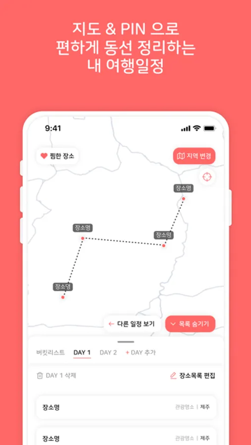 - 지도와 리스트를 보며 내 여행일정을 쉽게 제작 & 수정!