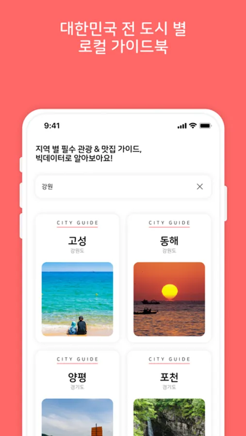 - 대한민국의 모든 시/군을 161개 지역으로 세분화해 제공하는 지역 별 가이드 컨텐츠.