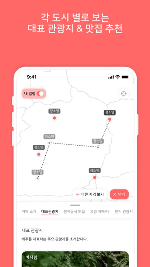 - 지도를 보며 동선 고민 없이 내 취향과 일정에 알맞는 여행지를 볼 수 있습니다.