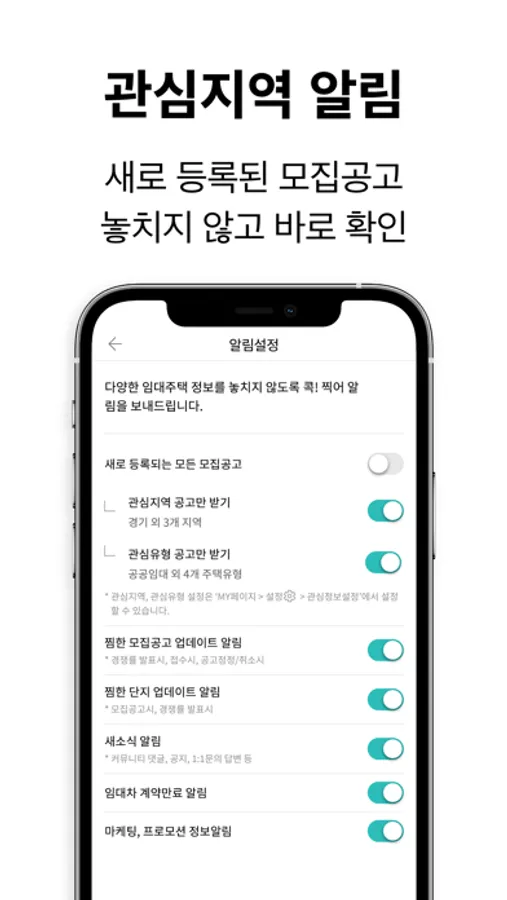 - 간단히 설정만 해두면 임대주택 정보를 놓치지 않도록 알림전송