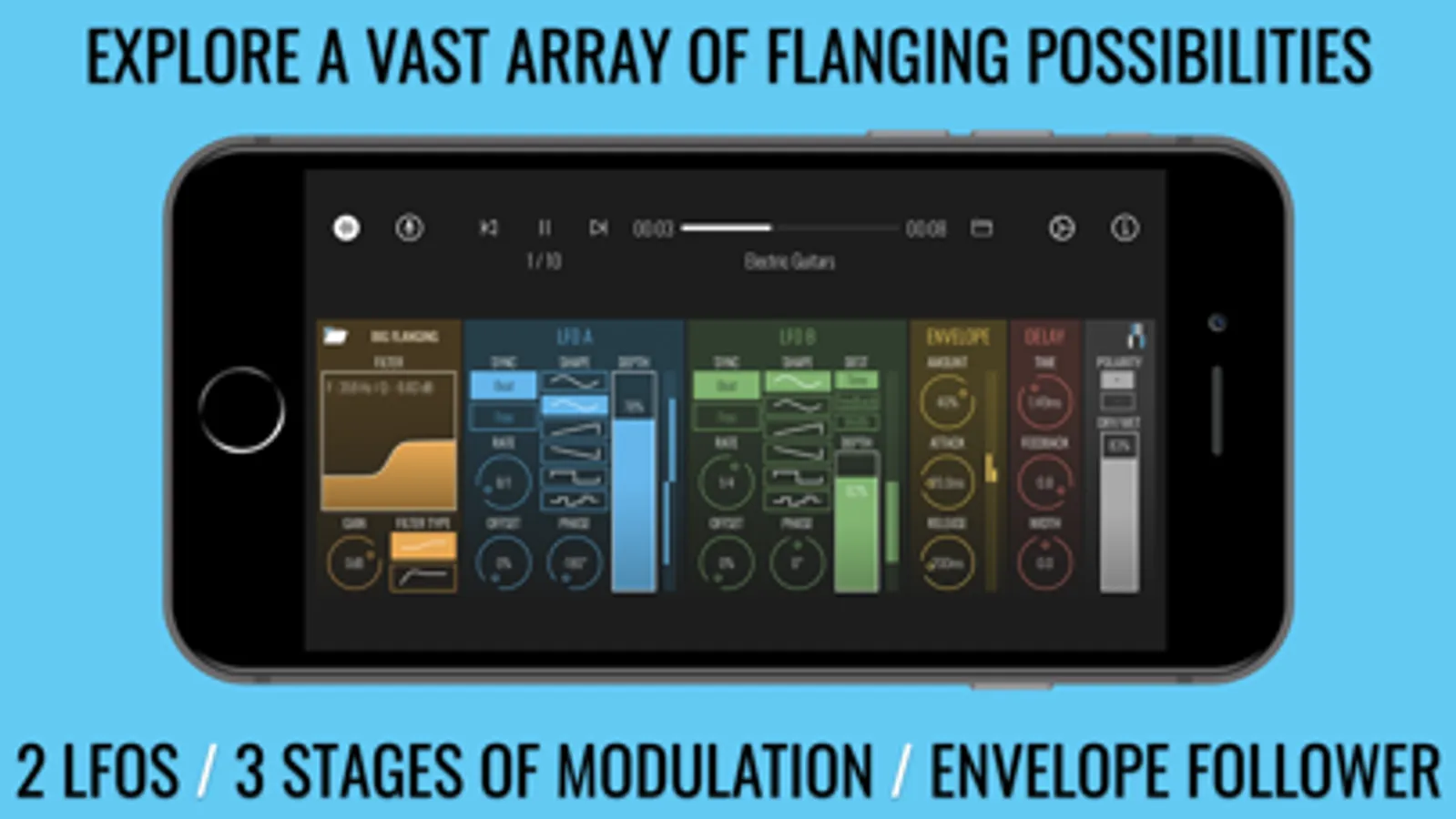 The ability to easily synchronize the flanging effect with the beat makes it ideal to bring subtle flanging variations while evolving harmoniously with a song’s dynamics.