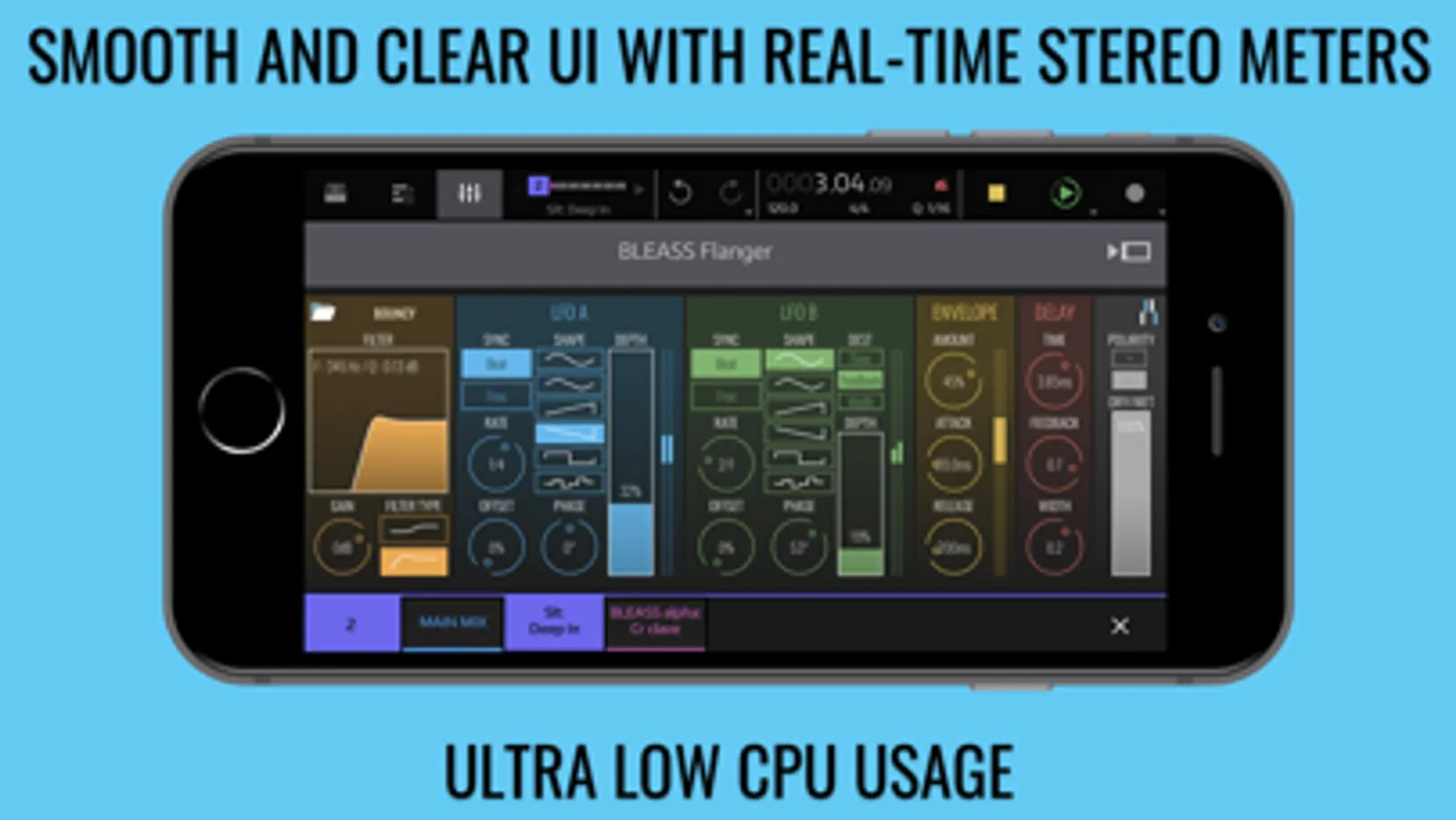 * PLEASE NOTE: this is an Audio Unit Effect plugin (AUv3) which requires a compatible host such as AUM, Audiobus, GarageBand, Cubasis, BM3 and Auria. You can also use the BLEASS Flanger as a standalone app using headphones, a mic or an external sound card. *