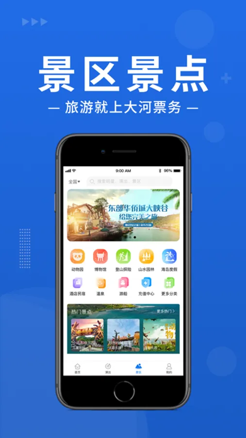 大河票务主营演出和景区业务,包含国内外各类热门演出及旅游票务,服务专业,购票便捷 。