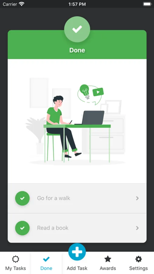 Unlock awards while finishing tasks on the regular to influence positive routines in your day