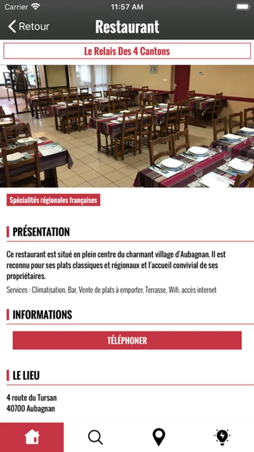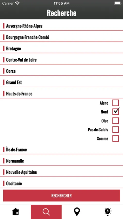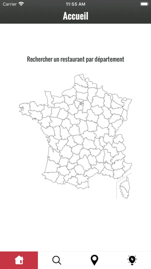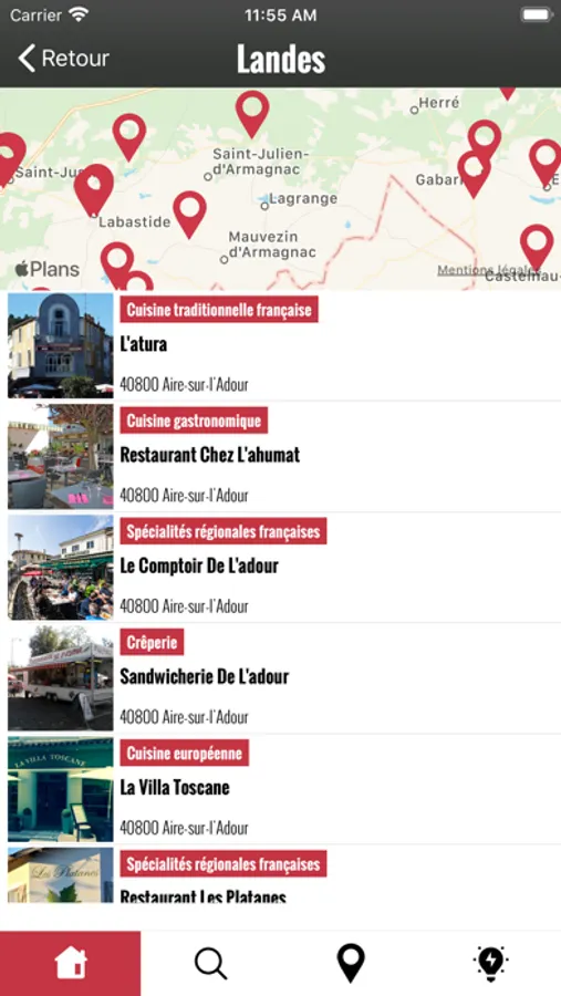 Vous pouvez rechercher les restaurants par géolocalisation, par région ou sur une carte.
