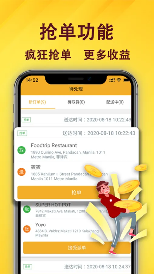 - 实时订单推送:菲快送骑手端能够实时推送待接订单,骑手可以及时接单,提高接单率。