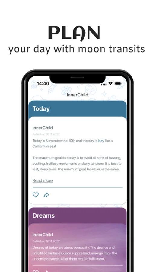 The InnerChild application integrates ancient astrologic knowledge, present day psychology and human design to help you get to know your inner child and restore your connection to it. To create your ballanced and happy life!