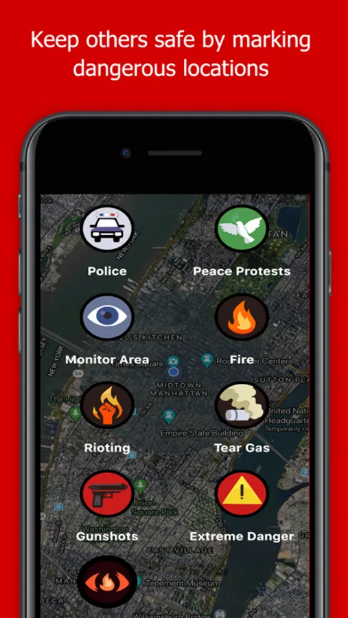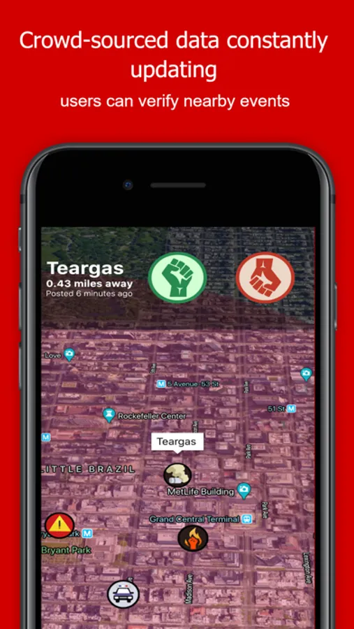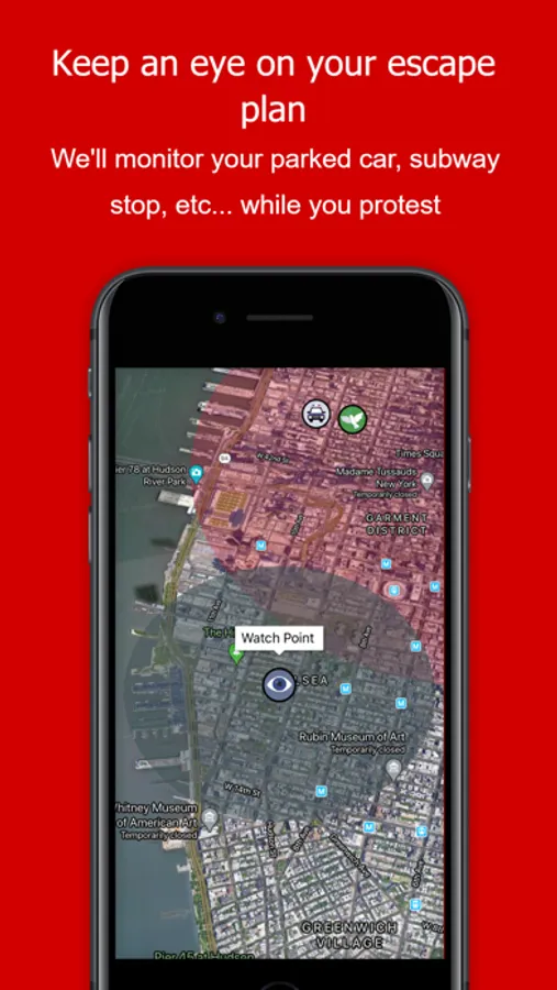 Users can also monitor custom locations such as their parked car, subway stop, or exit route for any dangerous events while they protest.