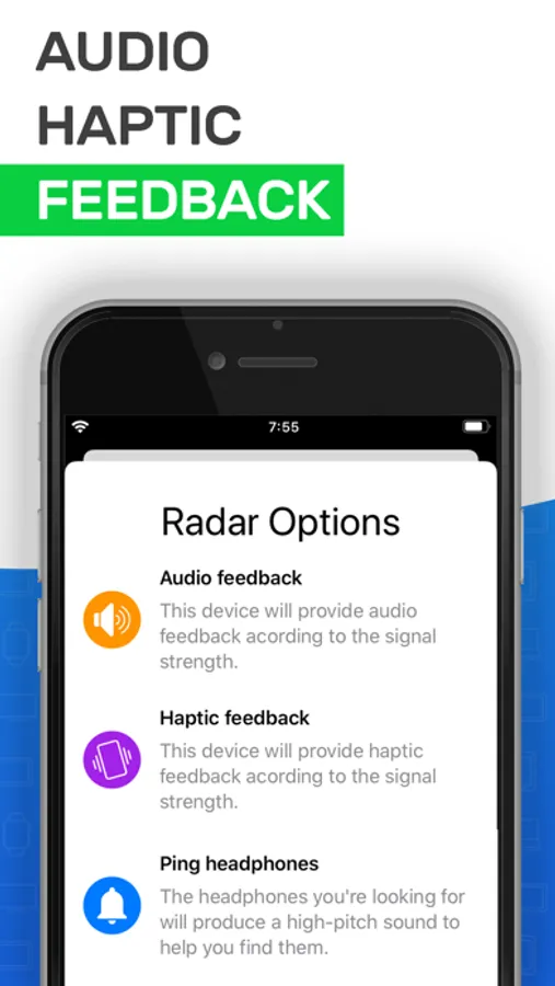 With AirTracker, losing your wireless headphones or any other Bluetooth-enabled devices (smartwatch, wireless charging case, fitness band, portable speaker, etc.) is a thing of the past. Plus, you can detect and manage spyware and unwanted Bluetooth devices in your vicinity.