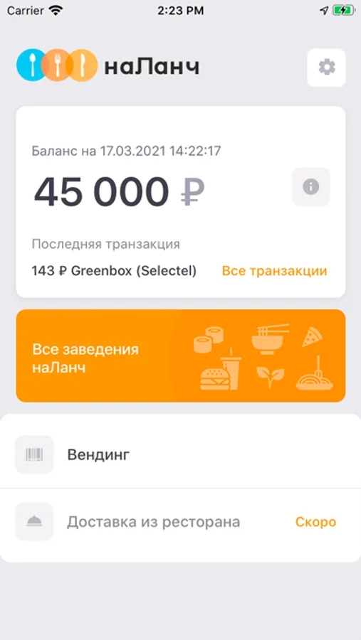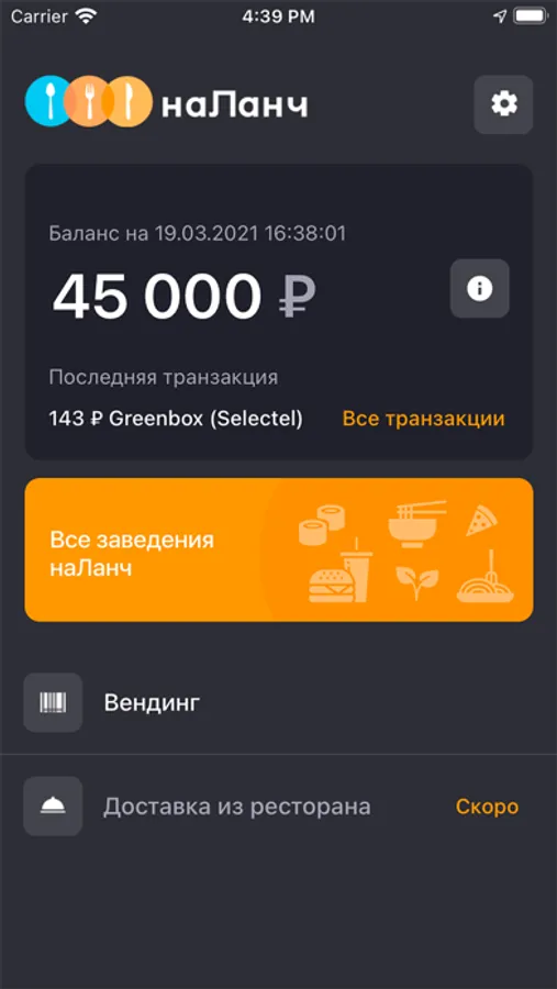 - Оплачивайте еду из вендинговых автоматов наЛанч с помощью приложения