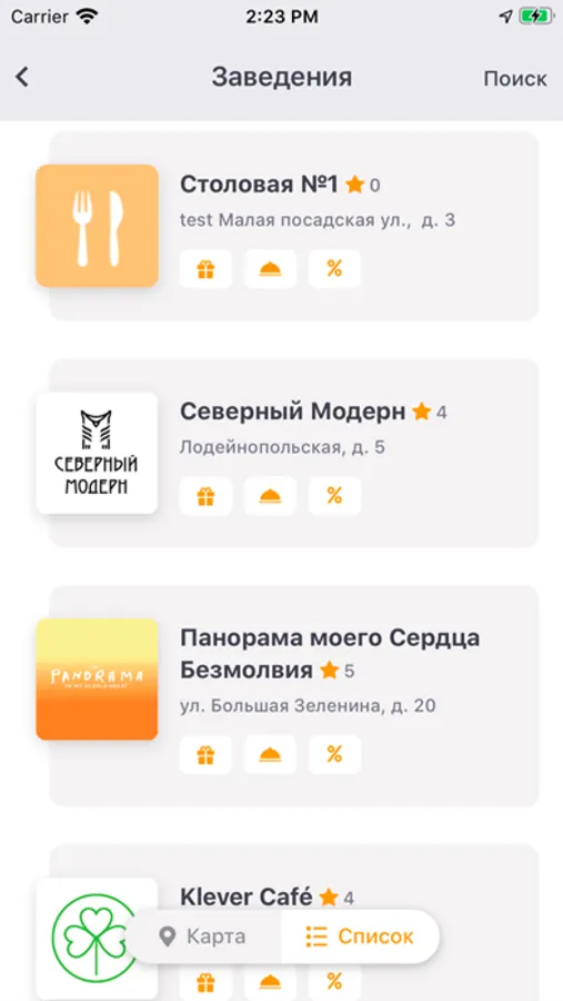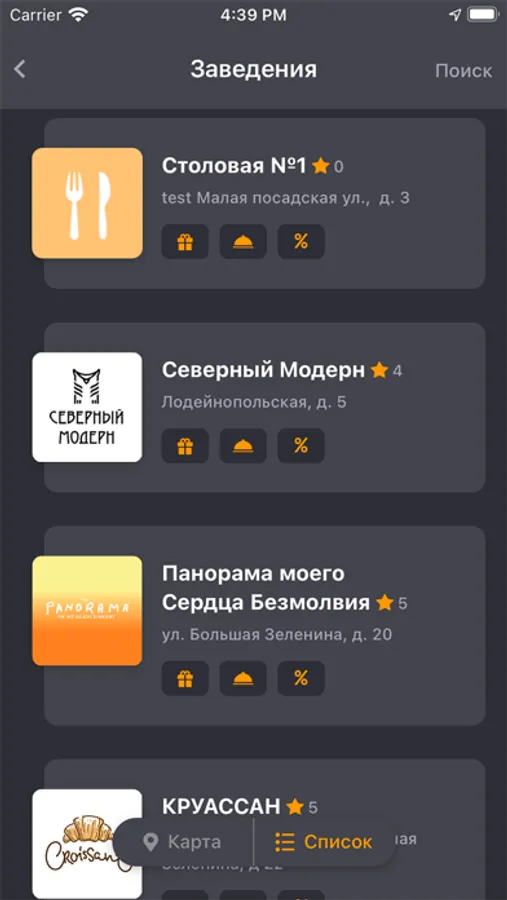 - Ищите рестораны по близости, где можно получить скидки, бонусы и подарки