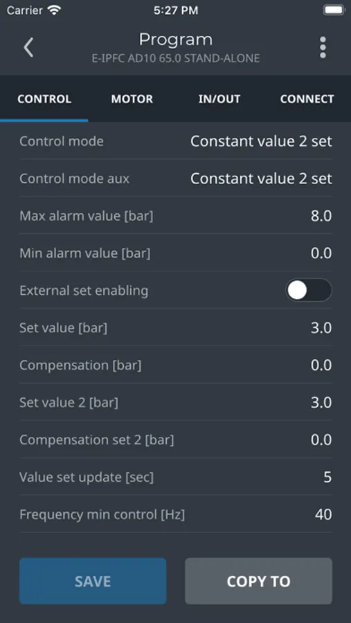 The application allows you to control a Pentax E-IPFC pump.