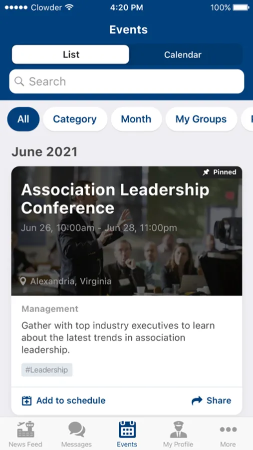News Feed– The latest news and updates from ACPA’s Master Elected Council and more than 30 committees at members’ fingertips.